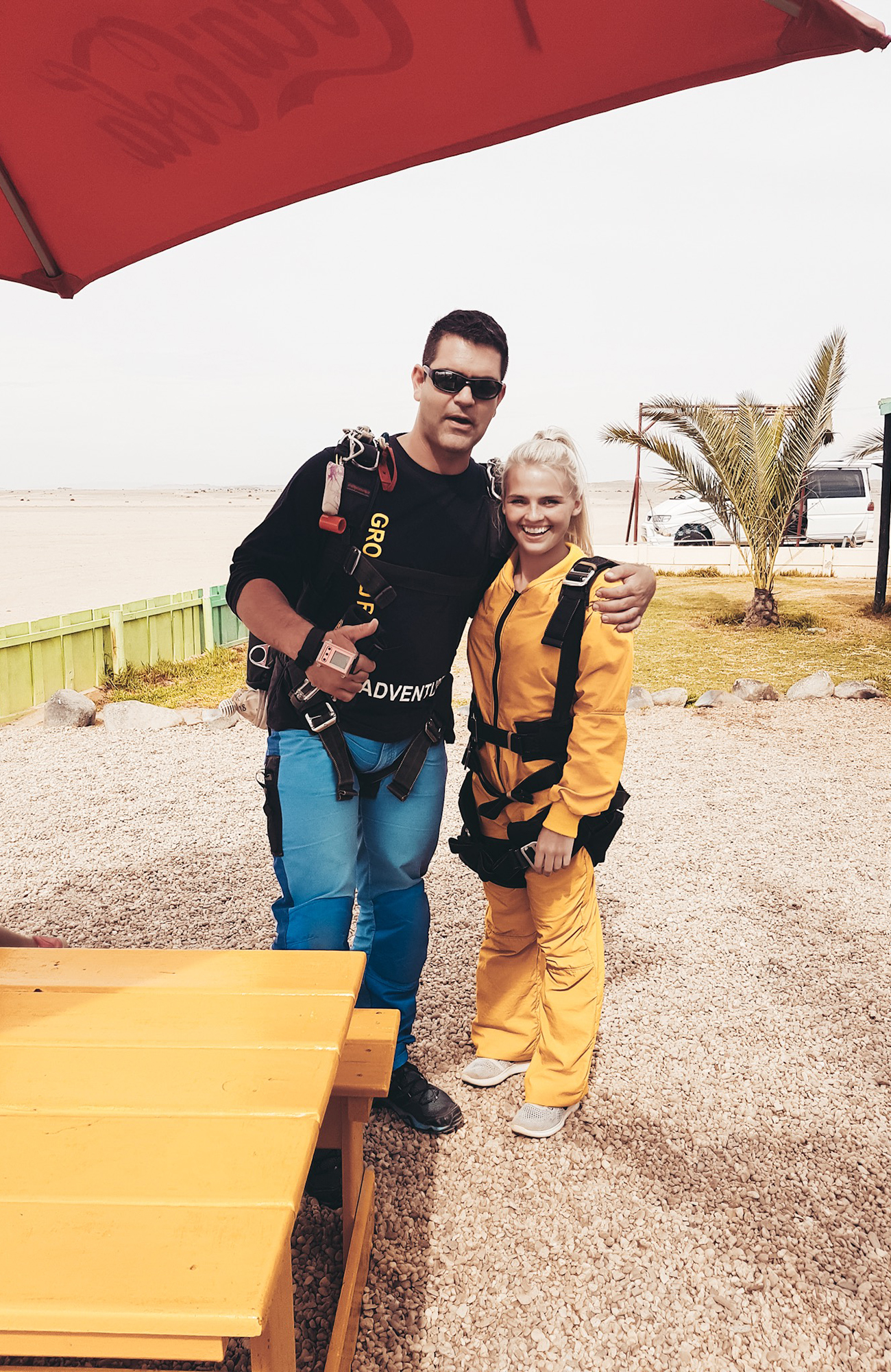Við mættum til Swakopmund og fórum beint í að skrá okkur í fallhlífarstökk næsta dag. Það var alls ekki á planinu að hoppa út úr flugvél einhversstaðar í Afríku í pínkuponsulitlum bæ, en málið var að við vorum nánast öll úr hópnum að fara að gera þetta þannig við gátum bara alls ekki sleppt því.