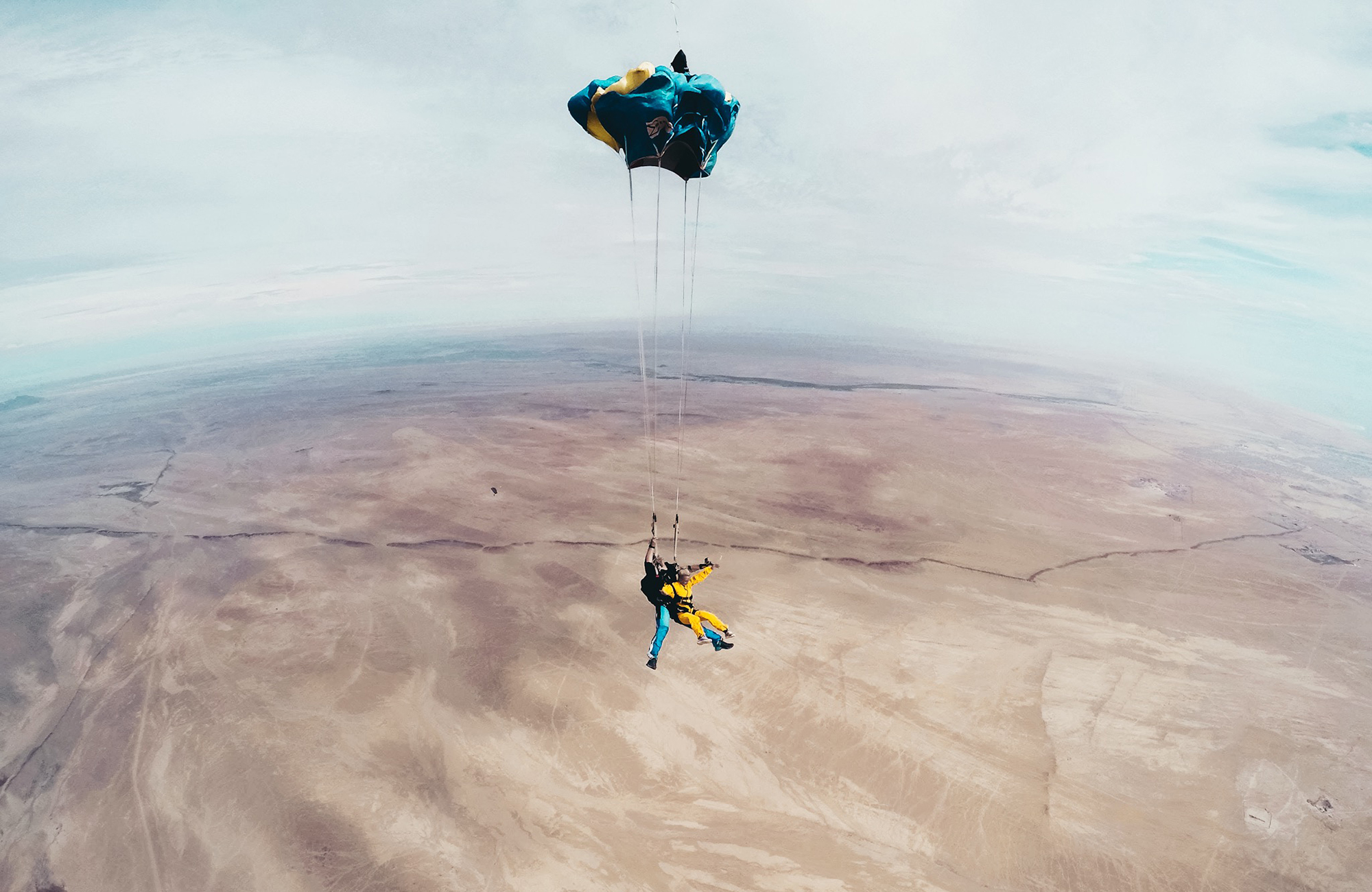 Þegar fallhlífin hafði opnast þá fór ég að reyna mitt besta til að losna við krampana í kinnunum (ef það er hægt að kalla það það) en ég gat bara ekki hætt að hlæja og brosa!