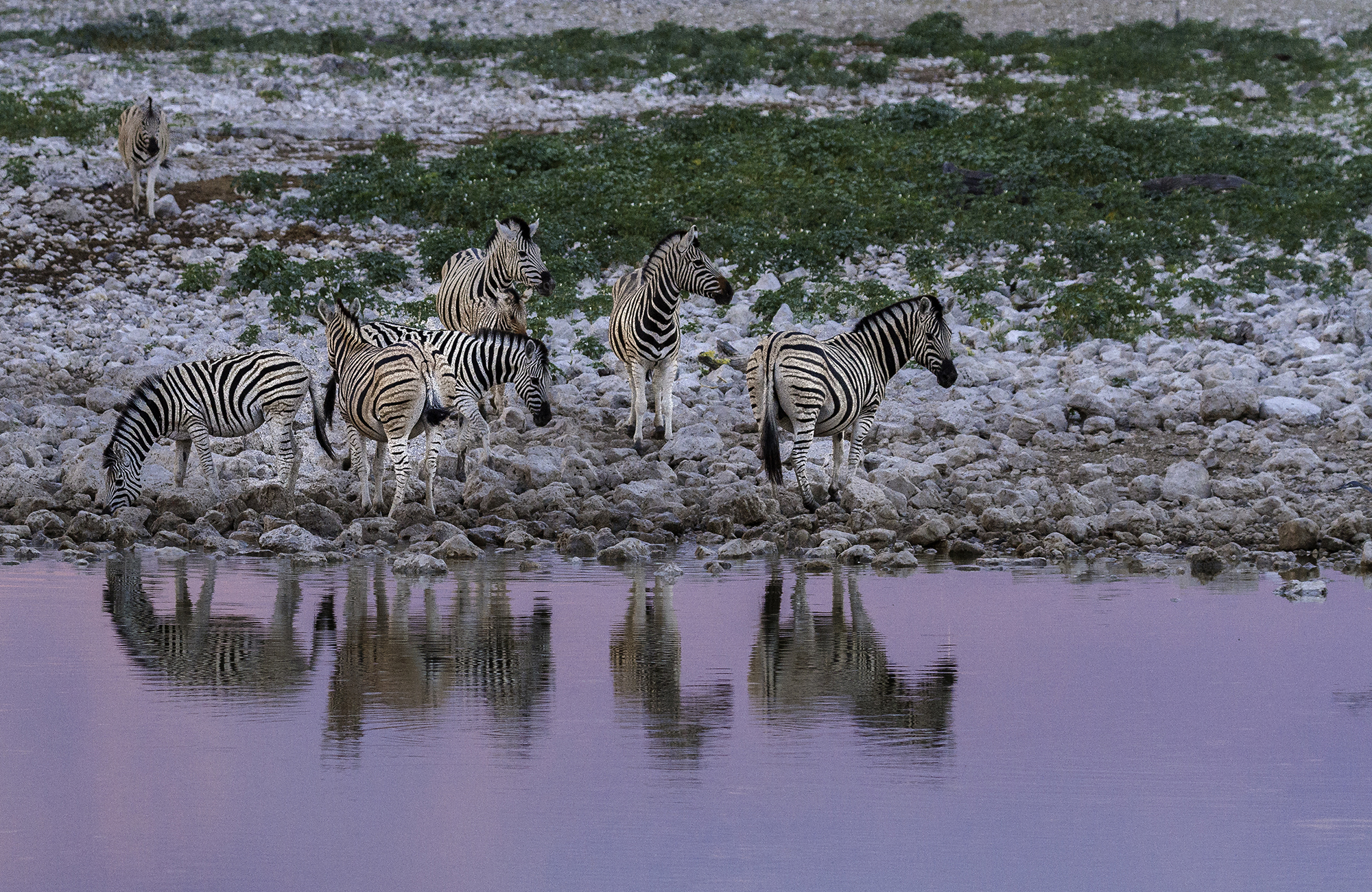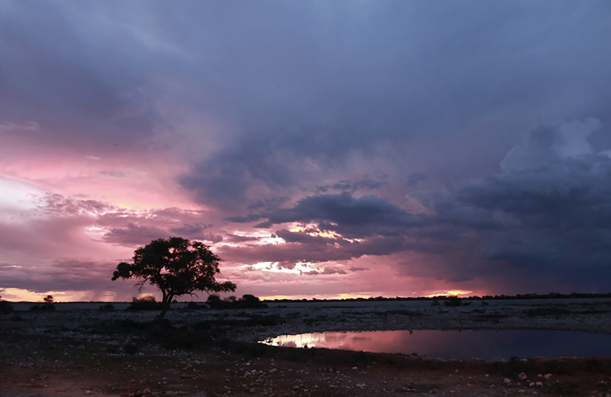 Kvöldinu var síðan varið upp við svokallað River Front þar sem dýrin safnast saman til að fá sér vatn að drekka. Þetta útsýni var svo fallegt og sólsetrið... VÁ! Himininn bleikur, þrumur og eldingar inn á milli og þarna stóðum við bara og biðum eftir dýrunum.