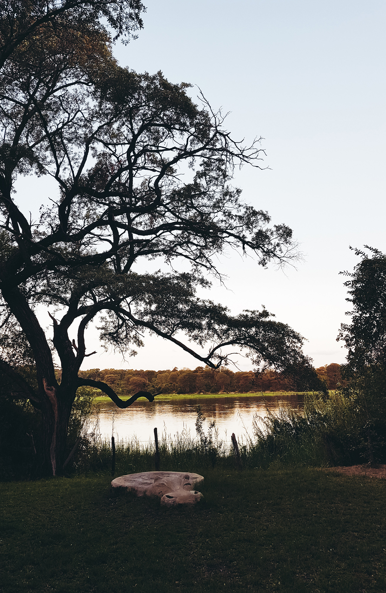 Tjöldin okkar voru staðsett alveg upp við þessa á sem var full af krókódílum og flóðhestum. Ég var skítstressuð um að vakna um nóttina til að þurfa að pissa, vitandi það að ég gæti mætt flóðhesti á leiðinni! En þetta var æðislegt tjaldsvæði og við áttum svo skemmtilegt kvöld öll saman.