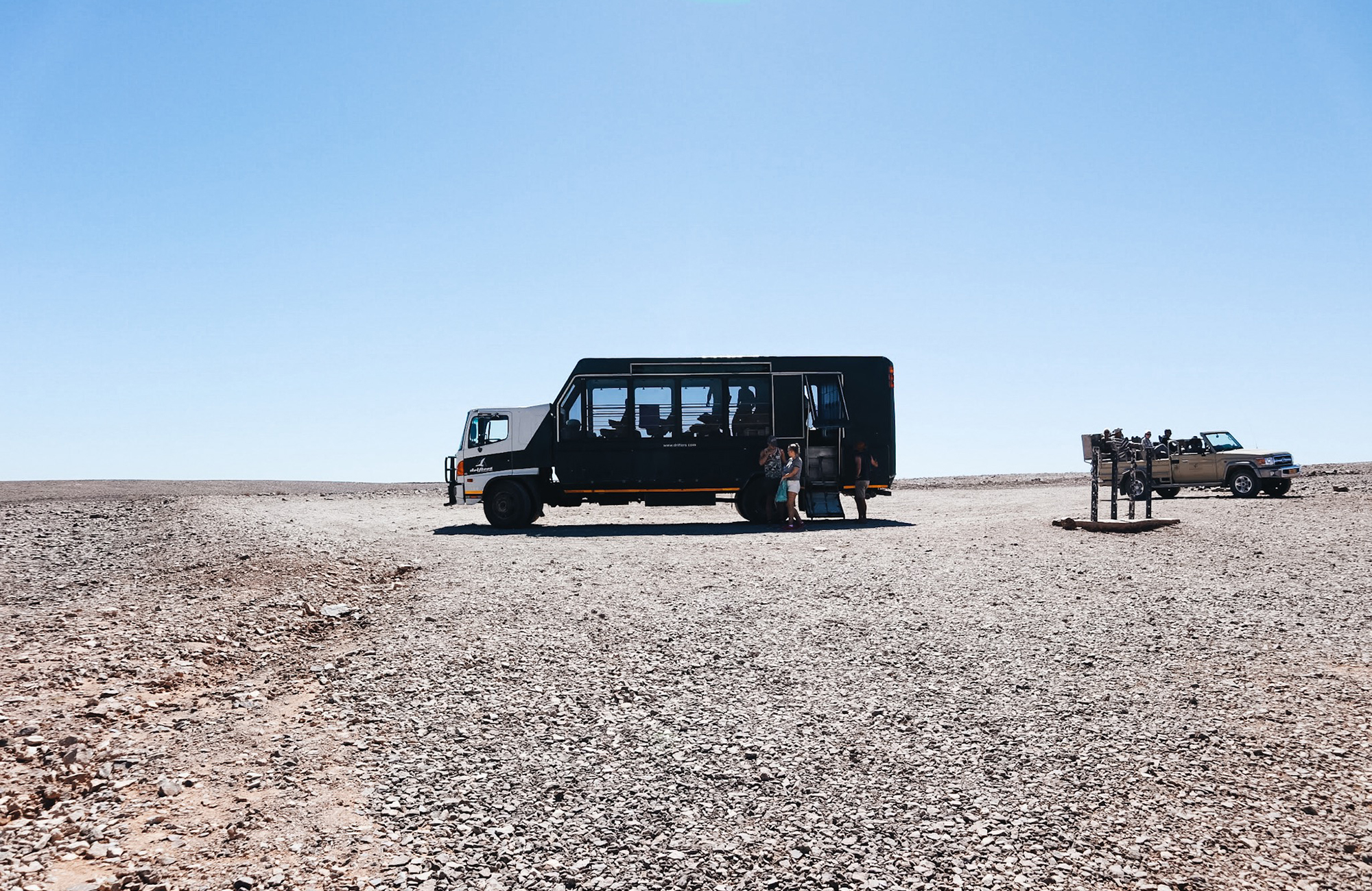 Næsta stopp var síðan að fara í desert camp. Að fara frá Orange River og í eyðimörkina var svo mikil breyting.