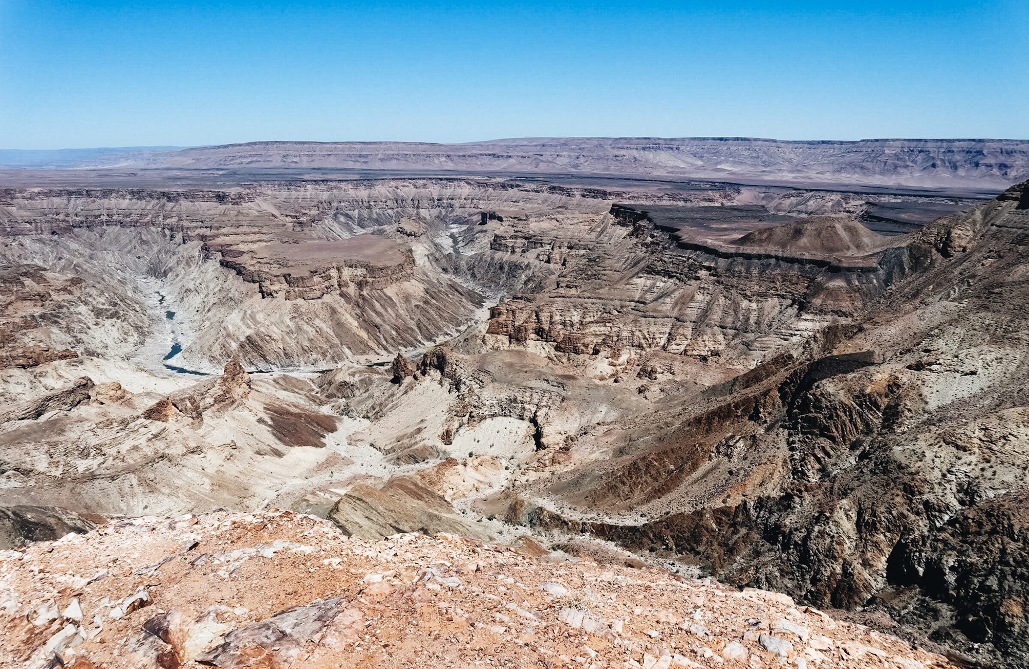 Við stoppuðum á leiðinni til að skoða Fish River Canyon, sem er stærsta gljúfur Afríku. Það var mjög fallegt og það var líka gott að standa aðeins upp og teygja úr sér eftir langa keyrslu.