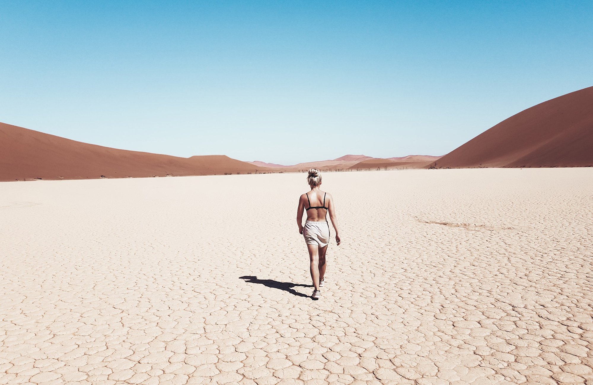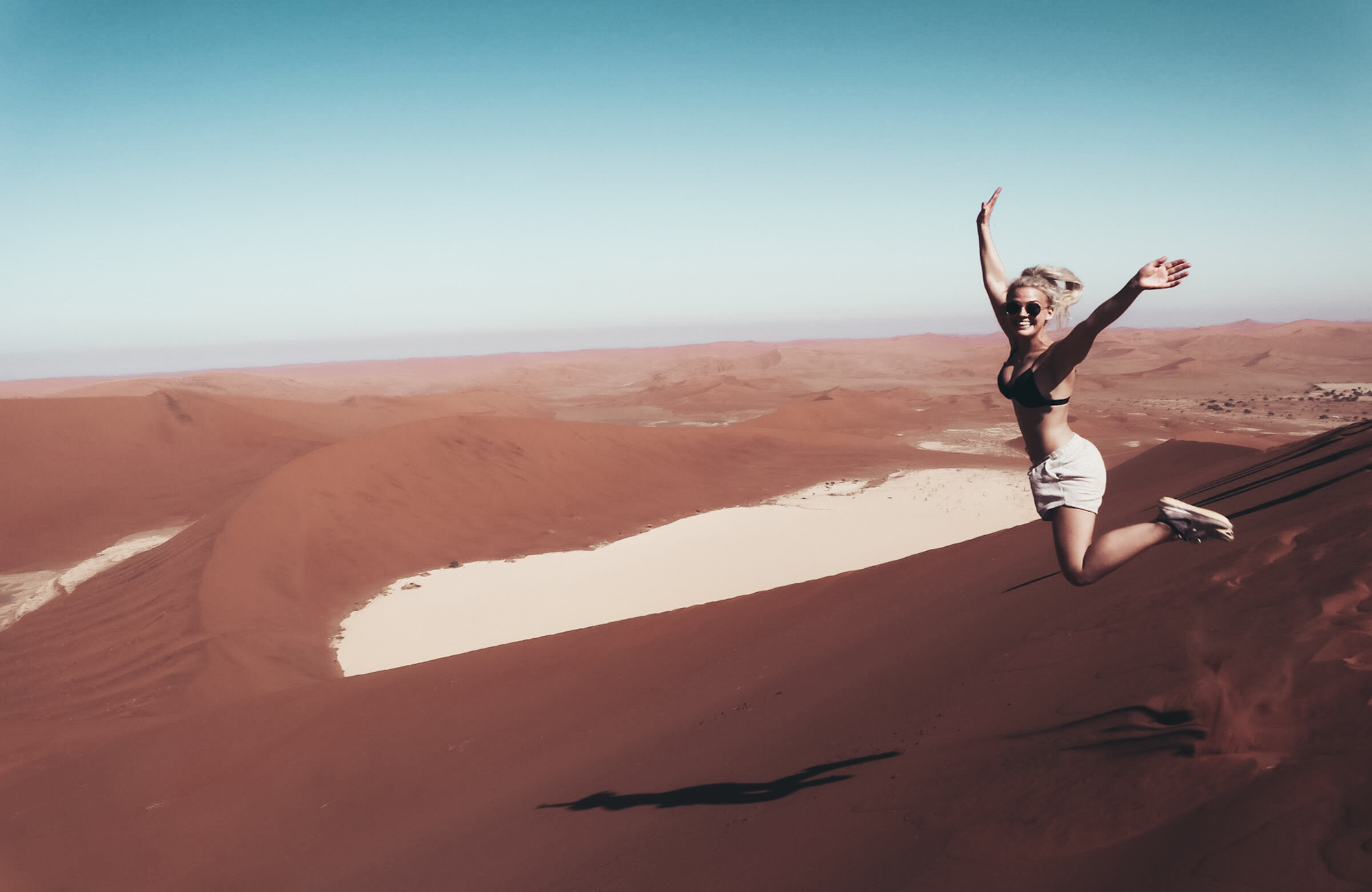 Næsta stopp var Sossusvlei, sem er salt- og leirslétta sem er umkringd rauðum sandhólum.