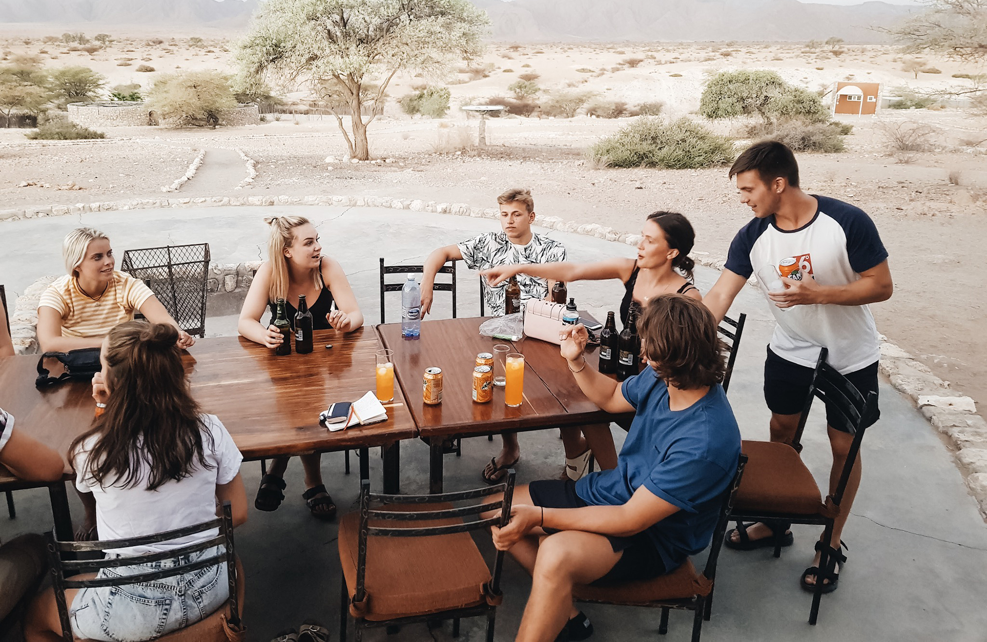 Við vorum 19 manna hópur saman í eyðimörkinni með bókstaflega ekkert í kringum okkur. Við gistum í tjaldi og þó það var ekkert í kringum okkur vorum við samt með útisturtur og útiklósett. FANCY, ég veit!