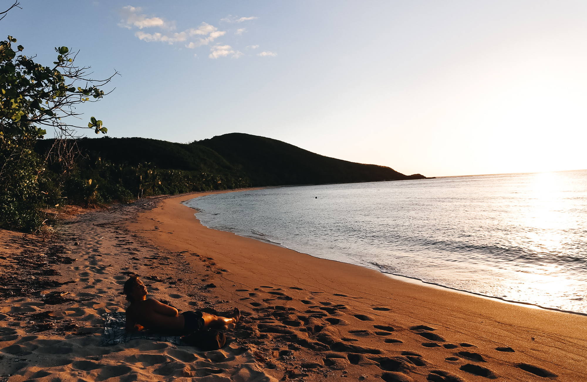 Við komum okkur fyrir þar, syntum í sjónum og horfðum svo á sólina setjast.