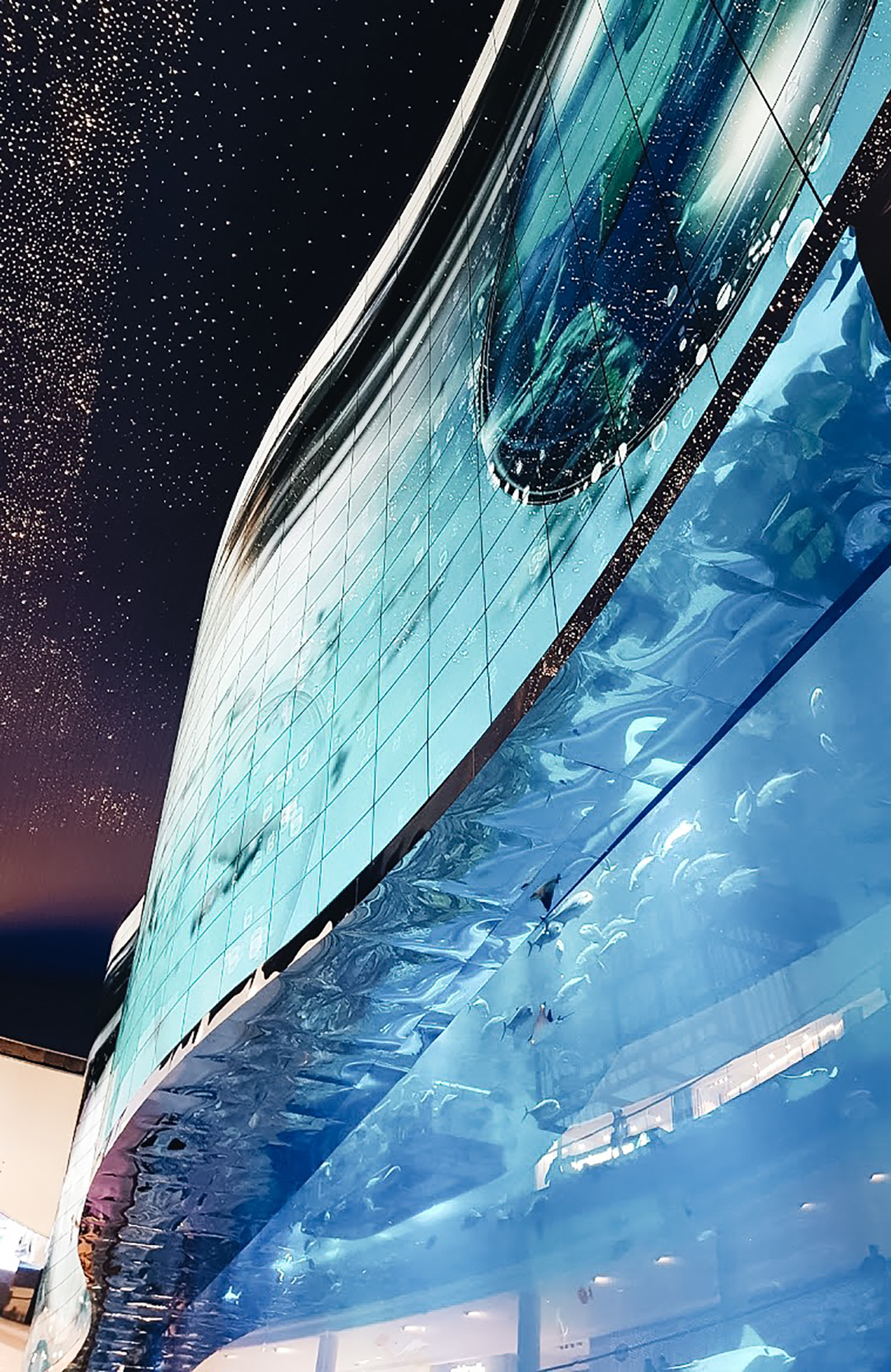 Heimsreisan hófst fyrir alvöru þegar við lentum í Dúbaí þar sem við myndum stoppa í tvo daga. Við mættum seint um kvöldið á hótelið, skiluðum töskunum af okkur og hoppuðum strax um borð í lestina til að komast í Dubai mollið.